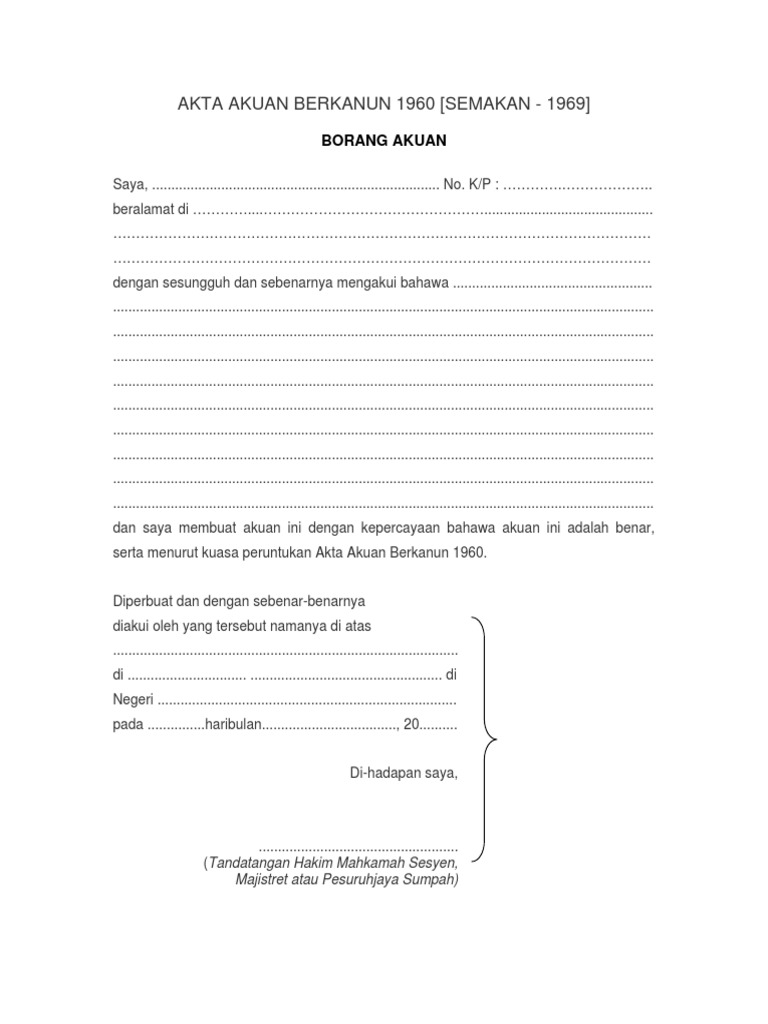 Contoh surat akuan berkanun pembelipenerima. Mana-mana orang yang membuat akuan itu dengan sukarela dalam bahasa Melayu atau bahasa Inggeris mengikut borang dalam Jadual. Ensure the info you fill in Surat Akuan is up-to-date and accurate.